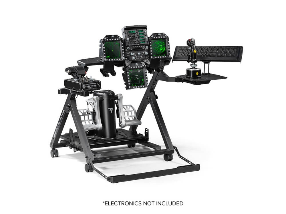 Vlieg je graag in een fighter jet? Dan plaats je jouw flightstick op in hoogte- en in hoek-verstelbare HOTAS mount. Vlieg je niet met een stick maar met een yoke? Geen probleem! Plaats jouw yoke op de middenplaat die eveneens in hoogte- en hoek-verstelbaar is.