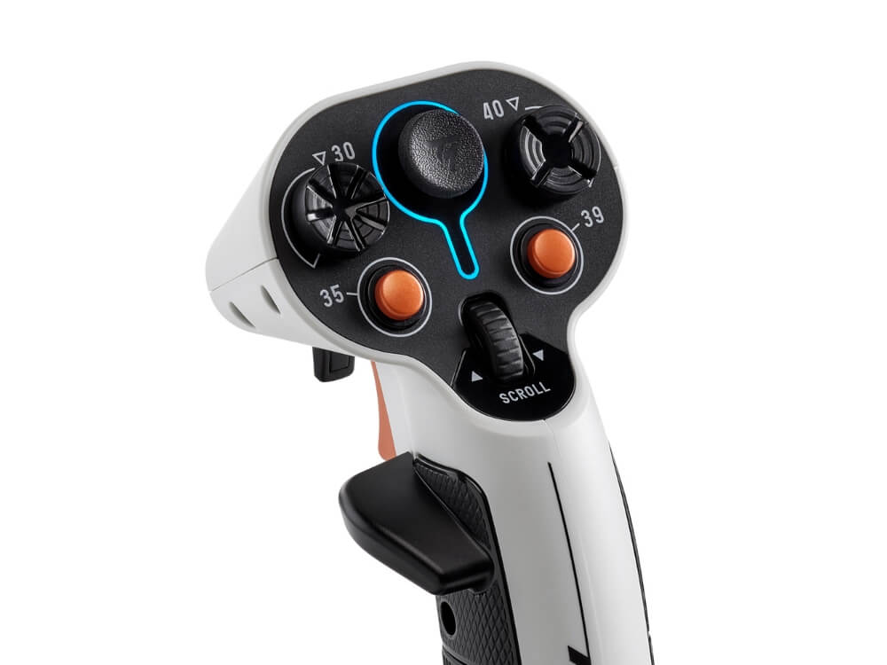 Whether you fly left- or right-handed, the Sol-R 1 adapts to you. Its interchangeable hand supports and removable wrist rest let you configure the stick for comfort during long missions. With 44 programmable action buttons, dual triggers, a mini-stick, and a scroll wheel, you can map every function of your ship exactly the way you want it. The RGB lighting—spread across more than eleven zones—adds more than visual flair: it enhances situational awareness by letting you assign subtle color feedback for systems or alerts. The illuminated throttle indicator helps you fine-tune thrust even in low-light cockpit environments.
