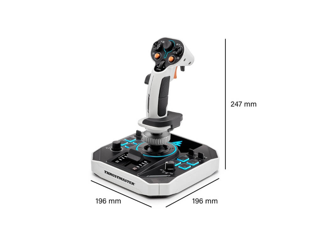 The Sol-R 1’s modular architecture allows you to expand your setup over time. The removable Sol-R grip works with Thrustmaster AVA and HOTAS Warthog bases (via the Warthog Converter, sold separately), and the Sol-R base accepts other Thrustmaster grips such as the Viper HOTAS Add-On and F/A-18C Hornet Add-On. It can be securely mounted using the TM Flying Clamp or built into a cockpit frame, with pre-drilled holes and four stability supports keeping your stick steady in the heat of battle.