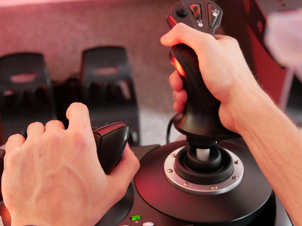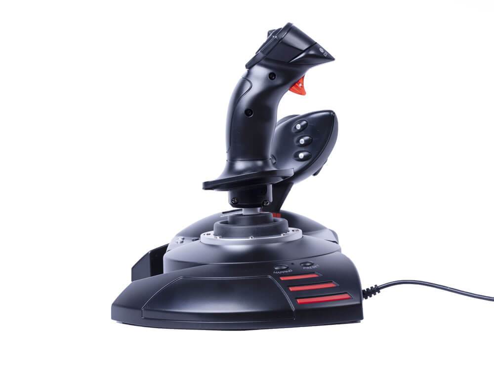 The T.Flight Stick HOTAS X is ergonomically designed, and the stick’s resistance is easily adjustable with a rotary switch. In addition, the flight controller has a detachable throttle, meaning this set can be used in almost every situation: on your lap (for console gaming), or on your desk, for example. The maximum distance between the flightstick and throttle is limited to a maximum of 45 centimeters.